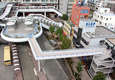 JRと私鉄の4路線が乗り入れる駅。密集市街地に駅前広場を新設整備。第32回全国街路事業コンクールにて、東京都昭島市様が会長賞を受賞。