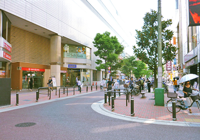 大阪府吹田市の地下鉄御堂筋線江坂駅に隣接する道路。道路空間の魅力向上のため、景観に配慮しながら、自動車よりも歩行者を優先させる道路を設計。