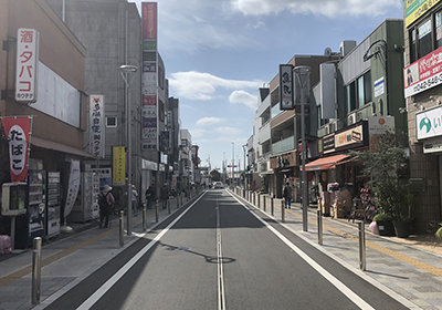東京都昭島市の歩道のない2車線道路を一方通行化(歩道設置+無電柱化)。まちづくり委員会にて商店や住民の方と一緒に道路構造や景観デザインを検討。