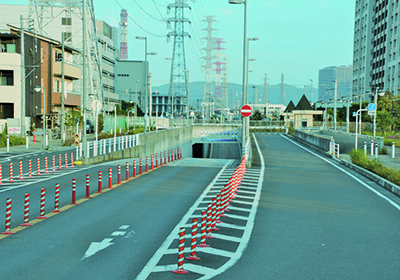 兵庫県尼崎市北部にある都市計画道路園田西武庫線が東西に延長約7.3km計画されている。そのうち御園工区において、交差点および本線道路、そして取付道路などの設計および道路仕上げ工事発注用のとりまとめ業務を行ったものである。さらに、大規模工場敷地内を横断することになったことから、先行して土壌汚染調査を行った。
