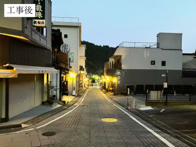 山梨県身延町で、日蓮宗総本山・身延山久遠寺の参道としてにぎわう一般県道身延線において、無電柱化に向けた電線共同溝の詳細設計を実施。商店が道路に近接し歩道もないことから、安全性向上と景観配慮の観点で求められていた無電柱化を、車道や民地を活用した特殊条件下で検討。