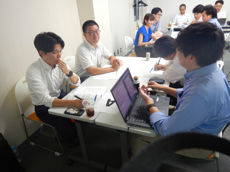 20代の若手社員を対象に、フォローアップ研修を実施しています。研修では、室内の研修だけでなく、チームに分かれてフィールドワークを行いながら地域課題の解決策を検討し、発表するということなどを行っています。